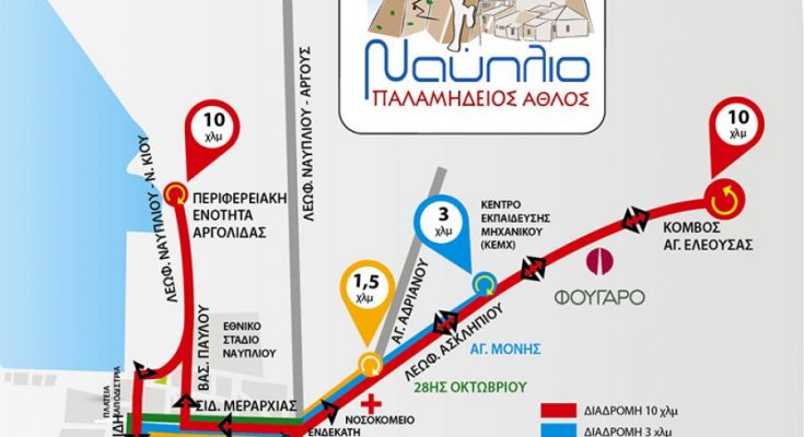 Δείτε συνημμένα τους Χάρτες της διαδρομής και με link την διαδρομή του Παλαμηδείου Άθλου. Χάρτης Παλαμήδειος Άθλος 5 χλμ.