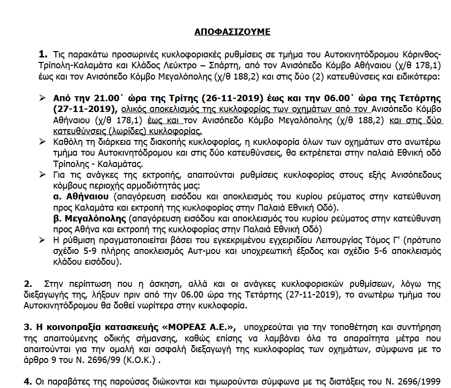 Κυκλοφοριακές ρυθμίσεις σε τμήμα του αυτοκινητοδρόμου Κόρινθος- Τρίπολη- Καλαμάτα και κλάδο Λεύκτρο- Σπάρτη 25/11/201925/11/2019 - by ΕΔΩ ΠΕΛΟΠΟΝΝΗΣΟΣ - Αφήστε ένα σχόλιο φωτο αρχείου