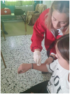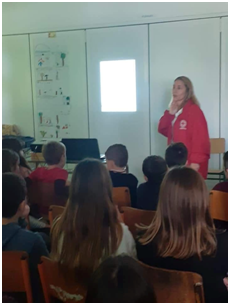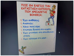 Επίσης η κυρία Παππά έκανε επίδειξη Πρώτων Βοηθειών στους μαθητές και παρουσίασε τη σειρά παροχής Πρώτων Βοηθειών στα τραύματα, στη ρινορραγία και στη λιποθυμία.