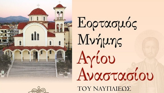 Τον Πολιούχο Ναυπλίου Άγιο Αναστάσιο τιμά το Σάββατο 1η Φεβρουαρίου 2020 ο Δήμος Ναυπλιέων.