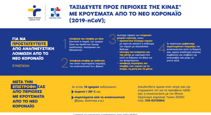 Οδηγίες από το Υπουργείο Υγείας για όσους ταξιδεύουν προς περιοχές της Κίνας 24/02/202024/02/2020 - by ΕΔΩ ΠΕΛΟΠΟΝΝΗΣΟΣ - Αφήστε ένα σχόλιο