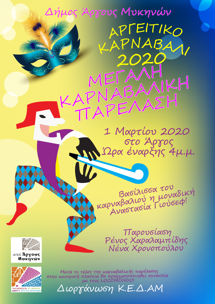 Το Σάββατο 29 Φεβρουαρίου, στο πλαίσιο της Αργείτικης Αποκριάς 2020 στο Δήμο Άργους