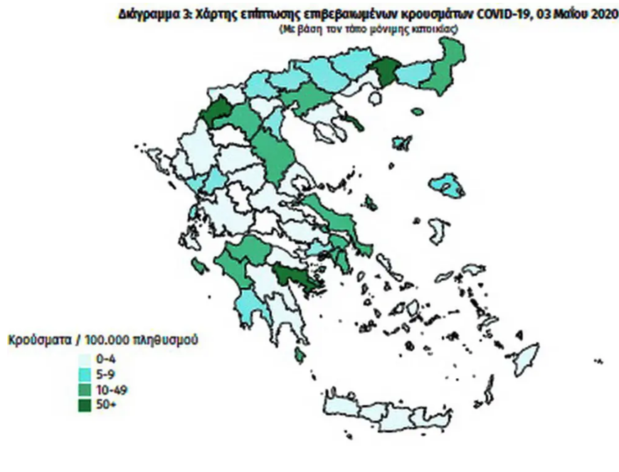 Εκ των αναφερόμενων κρουσμάτων επτά (7) έχουν λάβει εξιτήριο μετά από νοσηλεία και δέκα (10) νοσηλεύονται έως σήμερα σε δημόσια νοσοκομεία. Ενας εκ των νοσηλευομένων εξήλθε από τη ΜΕΘ. Τα υπόλοιπα κρούσματα είναι προς το παρόν υπό παρακολούθηση λαμβάνοντας συγκεκριμένες οδηγίες. Ενας συμπολίτης μας έχασε τη ζωή του.