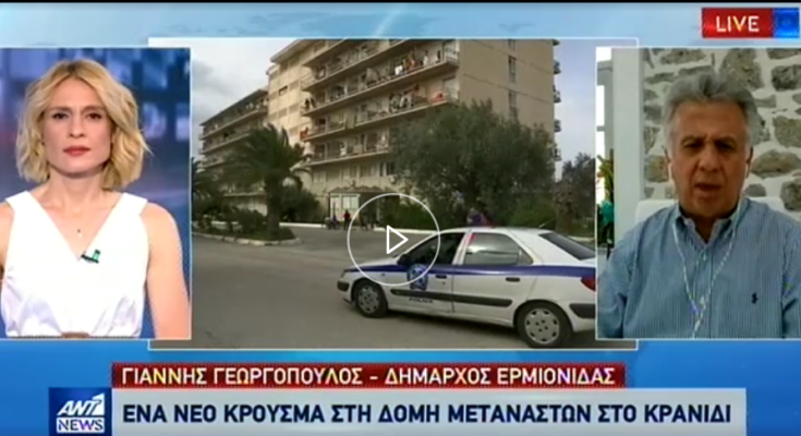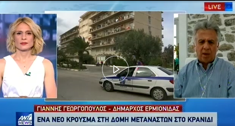 Στο Δελτίο Ειδήσεων του ΑΝΤ1 μίλησε ο Δήμαρχος Ερμιονίδας, κ. Γιάννης Γεωργόπουλος σχετικά με την κατάσταση στη δομή μεταναστών της περιοχής που λειτουργεί στο ξενοδοχείο “Γαλαξίας” και εξήγησε γιατί προσέφυγε στην Εισαγγελία Πρωτοδικών Ναυπλίου.