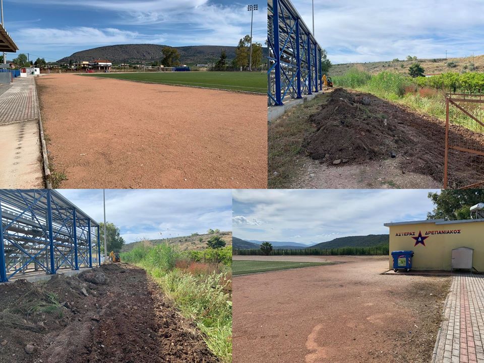 Στις αθλητικές εγκαταστάσεις του Δρεπάνου, βρίσκονται σε εξέλιξη εργασίες εξωραϊσμού και διαμόρφωσης του περιβάλλοντα χώρου. Επίσης έχουν πραγματοποιηθεί και συνεχίζονται να εκτελούνται εργασίες στα αποδυτήρια και τους χώρους υγιεινής.