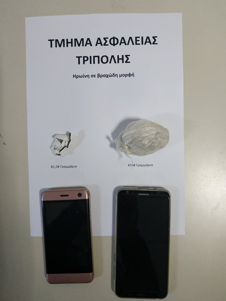 - ποσότητες ηρωίνης, συνολικού βάρους -34,5- γραμμαρίων και δύο κινητά τηλέφωνα, στην Αρκαδία,