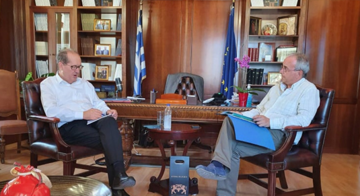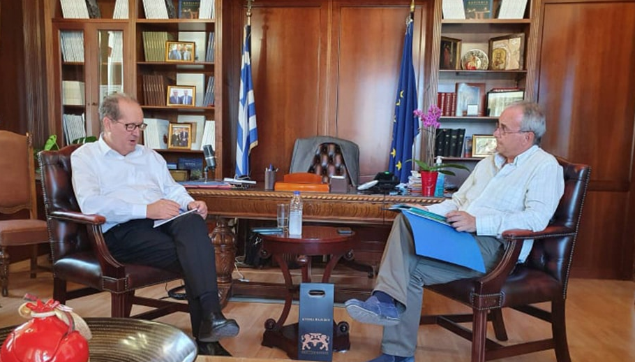 Νωρίτερα, τέλος, ο περιφερειάρχης είχε συνάντηση με τον Πάνο Πούλο, εκπρόσωπο του Συλλόγου “Φιλοξενία”, Διαπολιτισμική – Περιβαλλοντική Οργάνωση.