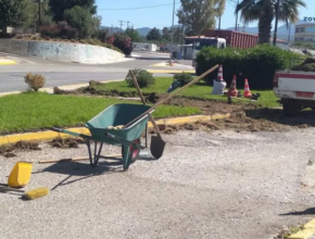 Συντήρηση πεζοδρομίων και κόμβων στον Ισθμό από συνεργείο της Π.Ε Κορινθίας