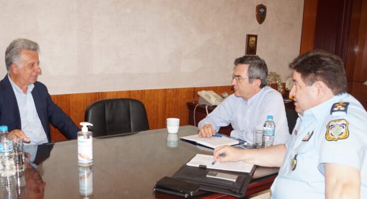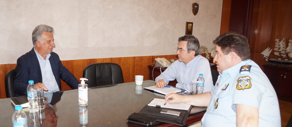 Τα θέματα που απασχολούν τον Δήμο Ερμιονίδας σε επίπεδο ασφάλειας και καλύτερης αστυνόμευσης, στις Κοινότητες του Δήμου, συζήτησαν ο Υφυπουργός Προστασίας του Πολίτη, κ. Λευτέρης Οικονόμου και ο Αρχηγός της ΕΛΑΣ, κ. Μιχάλης Καραμαλάκης, με τον Δήμαρχο Ερμιονίδας Γιάννη Γεωργόπουλο στο αρμόδιο Υπουργείο.