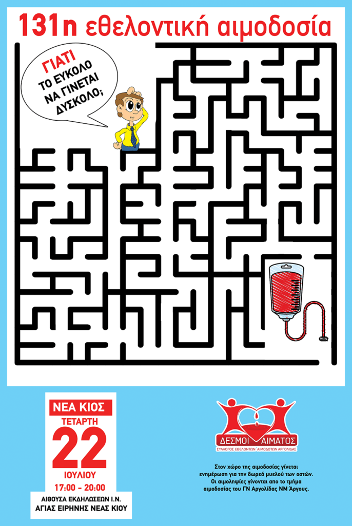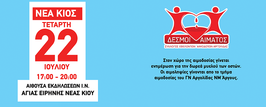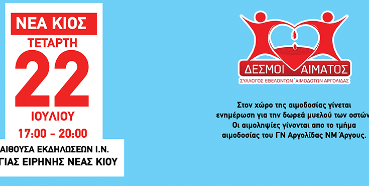 Για την αιμοδοσία είναι απαραίτητος ο Α.Μ.Κ.Α σας. Οι αιμοληψίες γίνονται από το Τμήμα Αιμοδοσίας της Ν.Μ. Άργους / Γ.Ν. Αργολίδας.