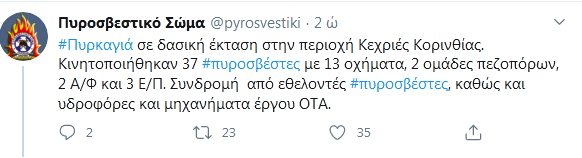 Το Πυροσβεστικό Σώμα αναφέρει:
