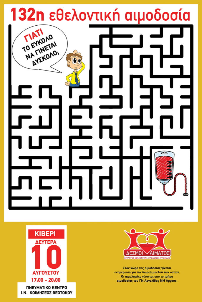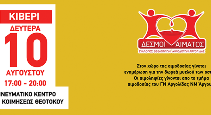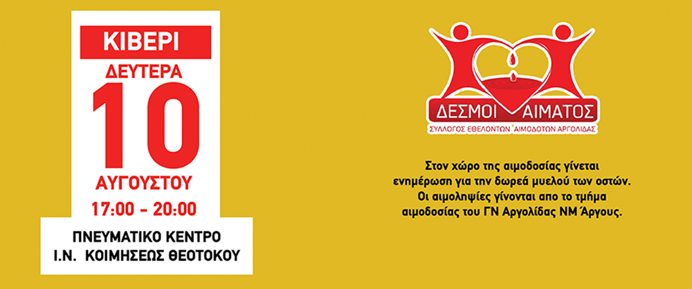 Για την αιμοδοσία είναι απαραίτητος ο Α.Μ.Κ.Α σας. Οι αιμοληψίες γίνονται από το Τμήμα Αιμοδοσίας της Ν.Μ. Άργους / Γ.Ν. Αργολίδας.