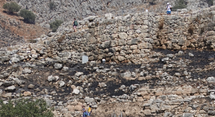 Σήμερα, το πρωί, η κ. Τζένη Βελένη, γενική διευθύντρια Αρχαιοτήτων και Πολιτιστικής Κληρονομιάς, η προϊσταμένη της Διεύθυνσης Συντήρησης κ. Μαρία Μερτζάνη μαζί με τη Έφορο Αργολίδας κ. Άλκηστη Παπαδημητρίου, περιήλθαν όλο τον αρχαιολογικό χώρο και διενήργησαν ενδελεχή και πολύωρη αυτοψία. Μετά την αυτοψία η κ. Τζένη Βελένη δήλωσε τα εξής: «Μετά από την αυτοψία που διενεργήσαμε σήμερα, διαπίστωσα ότι έγινε η λιγότερη δυνατή φθορά στον αρχαιολογικό χώρο των Μυκηνών. Ευτυχώς, δεν έχουν πάθει βλάβη τα οικοδομικά κατάλοιπα, πράγμα το οποίο πιστοποίησε και η παρουσία της διευθύντριας Συντήρησης κ. Μαρίας Μερτζάνη. Τα κατάλοιπα της φωτιάς είναι διαχειρίσιμα και μπορεί ο χώρος στο επόμενο χρονικό διάστημα να αποκατασταθεί. Τονίζω την πρόνοια της Εφορείας Αρχαιοτήτων Αργολίδας να αποψιλώνει τον χώρο καθ’ όλη τη διάρκεια του καλοκαιριού, το οποίο είχε ως αποτέλεσμα τη μη παραμονή επί μακρόν της φωτιάς, η οποία διήλθε με μεγάλη ταχύτητα. Πολύ σύντομα η Εφορεία θα αποκαταστήσει, με τους δικούς της συντηρητές και εργατοτεχνίτες, αλλά και με τη βοήθεια των κεντρικών υπηρεσιών του ΥΠΠΟΑ, τον χώρο. Θεωρούμε απαραίτητο να υπάρξει συνεργασία με τον Δήμο, ώστε να υπάρξει σύνδεση με το δίκτυο ύδρευσης».