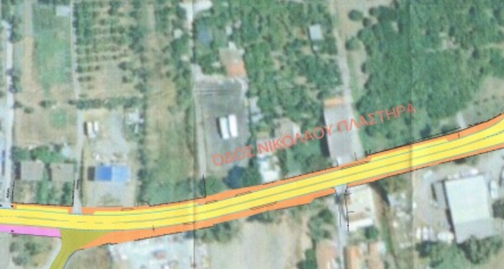 - σύνδεση και με δυνατότητα εξυπηρέτησης παροδίων ιδιοκτησιών, στην οδό Νικολάου Πλαστήρα και συγκεκριμένα της εφαρμογής δίιχνης τυπικής διατομής, με θέσεις στάθμευσης στα δεξιά της οδού και ποδηλατόδρομο μήκους 390 μ. επί του αριστερού πεζοδρομίου.