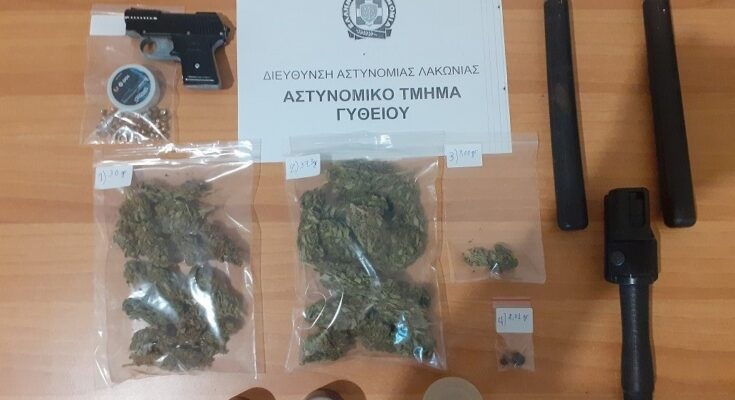 Συνελήφθη, χθες (23.9.2020) το πρωί, σε τοπική κοινότητα του Δήμου Ανατολικής Μάνης Λακωνίας, από αστυνομικούς του Αστυνομικού Τμήματος Γυθείου, 30χρονος ημεδαπός για παράβαση των νομοθεσιών για τα ναρκωτικά και τα όπλα.