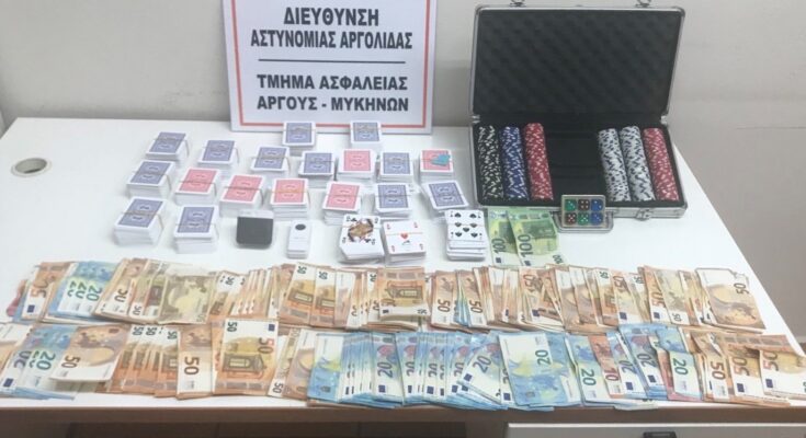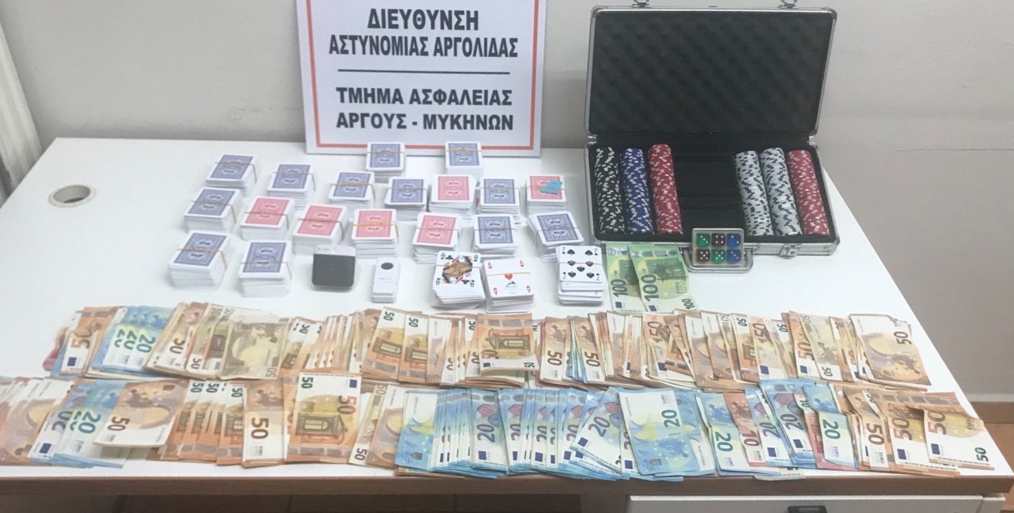 Στο πλαίσιο των ελέγχων για την καταπολέμηση του παράνομου «τζόγου», συνελήφθησαν, προχθές (1.11.2020) το απόγευμα, στο Άργος από αστυνομικούς του Τμήματος Ασφαλείας Άργους-Μυκηνών, σε συνεργασία με την Ομάδα Πρόληψης και Καταστολής του Εγκλήματος (Ο.Π.Κ.Ε.) Αργολίδας, έντεκα (11) ημεδαποί, ηλικίας από 32 έως 72 ετών, αντίστοιχα καθώς και ένας (1) 60χρονος αλλοδαπός.