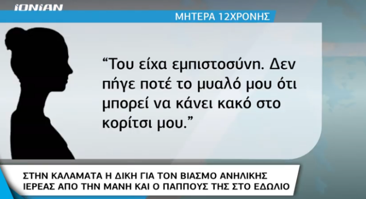 Στα δικαστήρια Καλαμάτας (Μεικτό Ορκωτό Δικαστήριο) αναβιώνει η υπόθεση που συγκλόνισε τη Μάνη. Ιερέας κατηγορείται για ασέλγεια σε ανήλικο κορίτσι. Την υπόθεση είχε φέρει στο φως της δημοσιότητας το χαμόγελο του παιδιού