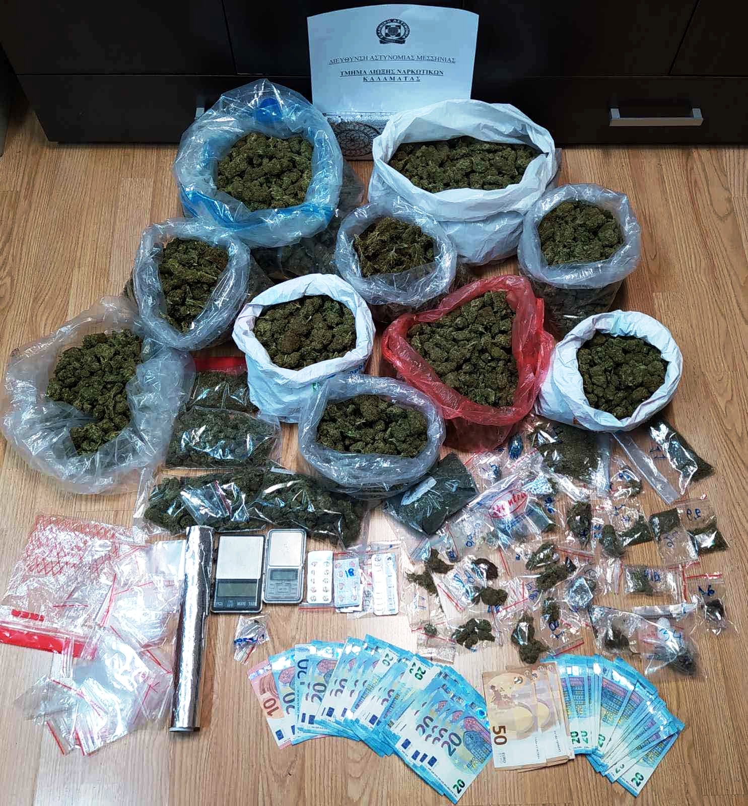 Ειδικότερα, χθες (23.11.2020) το πρωί, στην Αθήνα Αττικής, ύστερα από κατάλληλη αξιολόγηση και αξιοποίηση στοιχείων, αστυνομικοί του Τμήματος Δίωξης Ναρκωτικών της Υποδιεύθυνσης Ασφάλειας Καλαμάτας, σε συνεργασία με αστυνομικούς της Υποδιεύθυνσης Δίωξης Ναρκωτικών της Διεύθυνσης Ασφάλειας Αττικής, πραγματοποίησαν έρευνες σε οικίες των ανωτέρω, τις οποίες χρησιμοποιούσαν για την απόκρυψη και αποθήκευση ναρκωτικών ουσιών (καβάτζες), όπου βρήκαν συνολικά και κατέσχεσαν: