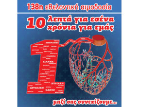 Σας καλούμε στην 138η τακτική εθελοντική αιμοδοσία του συλλόγου μας που θα πραγματοποιηθεί την Δευτέρα 8 και Τετάρτη 10 Φεβρουαρίου 2021 από τις 4:30μμ έως τις …