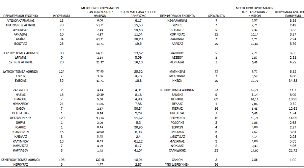 Αναλυτικά η γεωγραφική κατανομή των νέων κρουσμάτων