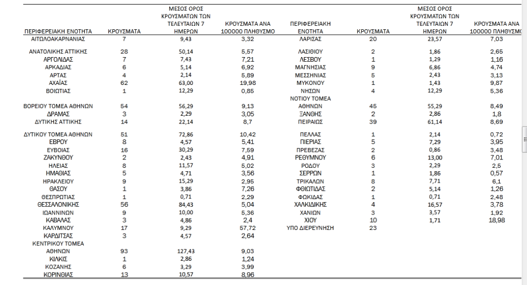 Covid19: 698 νέα κρούσματα στη χώρα – 13 στην Κορινθία