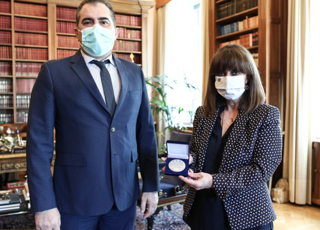 Ο Δήμαρχος, παρέδωσε στην Πρόεδρο της Δημοκρατίας το πρώτο αναμνηστικό μετάλλιο με την ονομασία «ΠΝΟΗ ΕΛΕΥΘΕΡΙΑΣ», που εξέδωσε η πόλη της Καλαμάτας με αφορμή τη συμπλήρωση 200 χρόνων από την έναρξη της Επανάστασης του 1821.