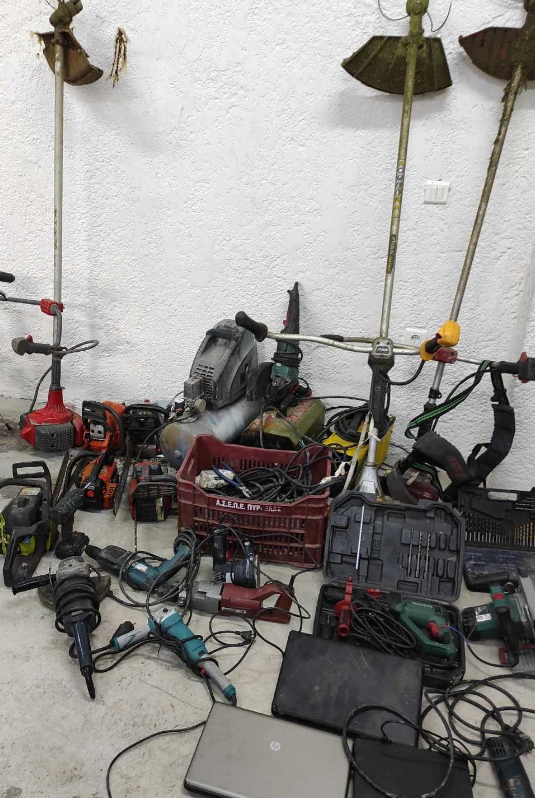 Επιπλέον, σε σημείο κοντά από τις οικίες των πέντε (5) μελών της εγκληματικής οργάνωσης, σε τοπική κοινότητα του Δήμου Άργους-Μυκηνών, βρέθηκαν και κατασχέθηκαν πλήθος μηχανημάτων (ηλεκτρικοί τροχοί, χορτοκοπτικά, αλυσοπρίονα κ.ά.) και φορητοί ηλεκτρονικοί υπολογιστές, η προέλευση και το νόμιμο της κατοχής των οποίων ερευνάται.