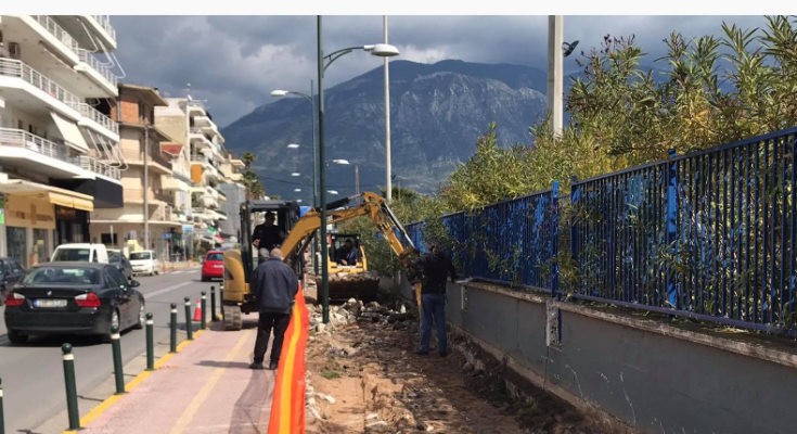 Οι εργασίες αφορούν στην αντικατάσταση της υπάρχουσας φθαρμένης – κατεστραμμένης πλακόστρωσης του νότιου πεζοδρομίου, που εκτείνεται ανάμεσα στην περίφραξη του λιμανιού και του υπάρχοντος ποδηλατόδρομου, καθώς επίσης και σε μερική αποξήλωση και αντικατάσταση, εάν αυτό κριθεί απαραίτητο κατά την διάρκεια αφαίρεσης των υφιστάμενων πλακών, από την υπηρεσία.