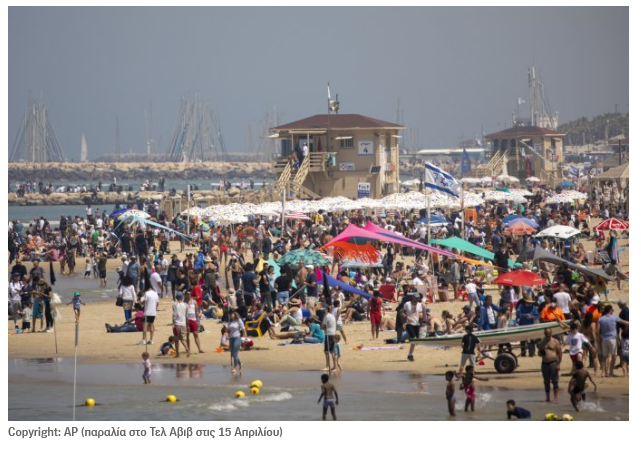 Για πρώτη φορά εδώ και δέκα μήνες το Ισραήλ κατέγραψε μηδενικούς θανάτους από κορονοϊό. Η καθημερινότητα επέστρεψε για τα καλά στο Ισραήλ ενώ τις επόμενες μέρες αναμένεται να διοργανωθούν και οι πρώτες συναυλίες με τη συμμετοχή μάλιστα Ελλήνων καλλιτεχνών. Μεταξύ άλλων συναυλίες θα δώσουν στο Ισραήλ τις επόμενες μέρες ο Νίκος Βέρτης, ο Γιάννης Κότσιρας και η Πάολα. «Κανένας δεν μιλάει για τον κορονοϊό. πολύ λίγα κρούσματα και ελάχιστοι νεκροί. Το καλοκαίρι είναι εδώ» ανέφερε μεταξύ άλλων ο Αχιλλέας Πεκλάρης στην εκπομπή Τώρα Ό,τι Συμβαίνει στο OPEN TV.