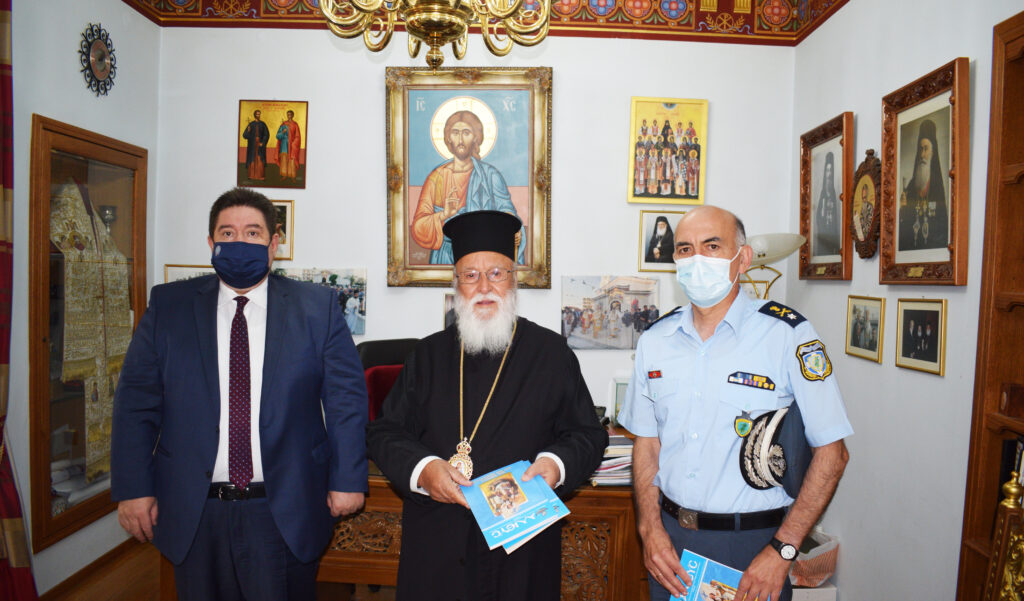 Στη συνέχεια, επισκέφτηκε τον Σεβασμιώτατο Μητροπολίτη Μαντινείας και Κυνουρίας κ.κ. Αλέξανδρο, στα γραφεία της Ιεράς Μητροπόλεως, στην Τρίπολη.