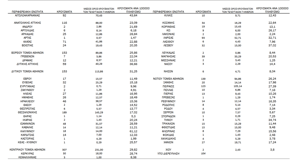 Στην Αργολίδα εντοπίστηκαν 6 νέα κρούσματα, στην Αρκαδία 25, στην Κορινθία 19, στη Λακωνία 2 και στη Μεσσηνία 2
