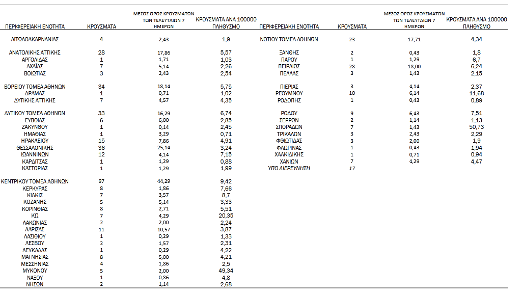 489 νέα κρούσματα τις τελευταίες 24 ώρες στη χώρα (γεωγραφική κατανομή)