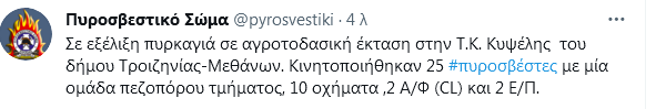 Σύμφωνα με ενημέρωση του Πυροσβεστικού Σώματος: