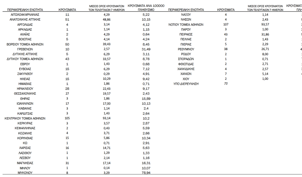 - Η διάμεση ηλικία των κρουσμάτων είναι 43 έτη (εύρος 0.2 έως 106 έτη), ενώ η διάμεση ηλικία των θανόντων είναι 78 έτη (εύρος 0.2 έως 106 έτη).