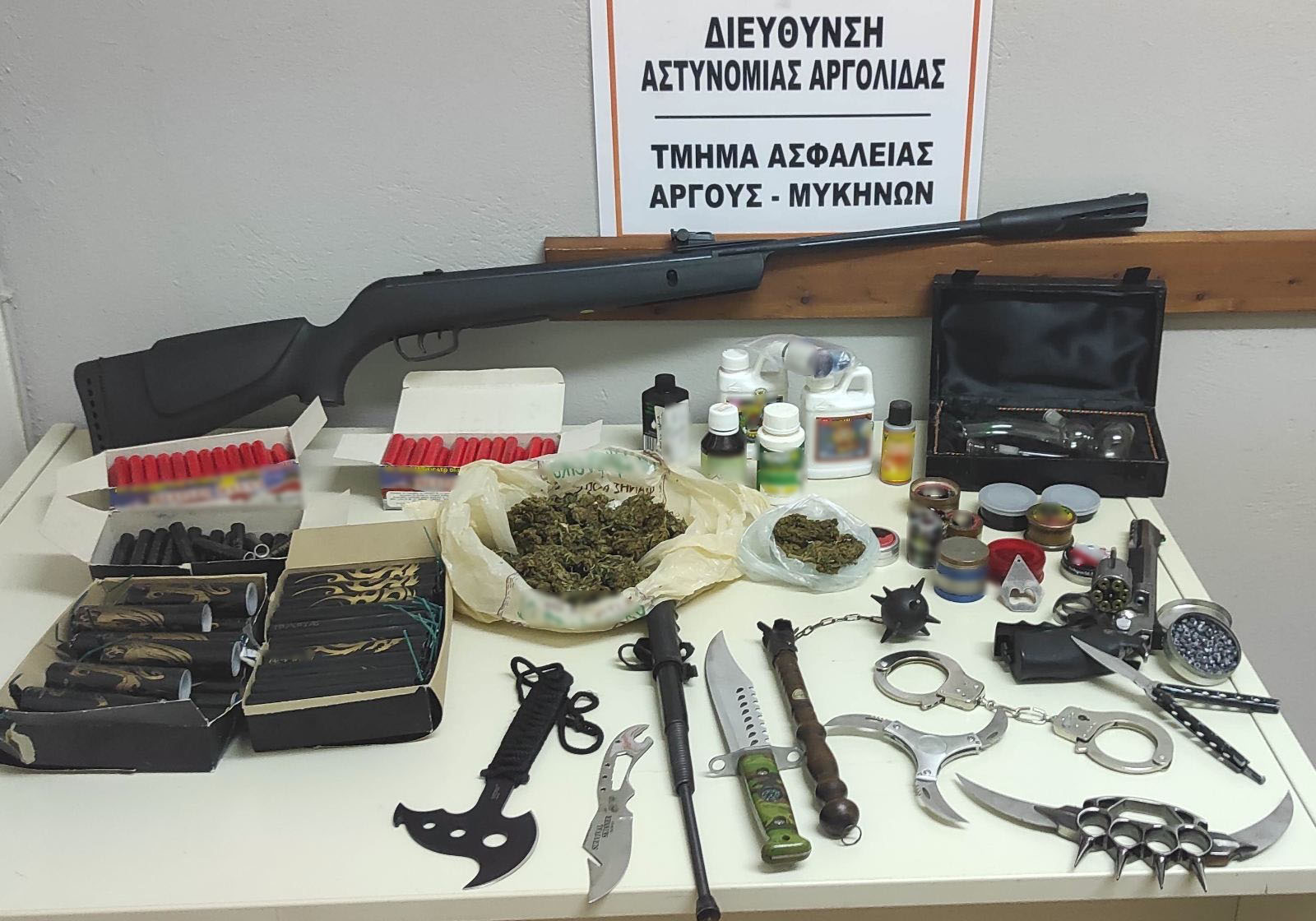 Συνελήφθη, προχθές (22.7.2021) το απόγευμα, σε τοπική κοινότητα του Δήμου Άργους-Μυκηνών Αργολίδας, από αστυνομικούς του Τμήματος Ασφάλειας Άργους-Μυκηνών, 38χρονος ημεδαπός, για ναρκωτικά , ενώ για την ίδια υπόθεση κατηγορείται ακόμη ένας 34χρονος ημεδαπός, για παράβαση των νομοθεσιών για τα ναρκωτικά, τα όπλα και των βεγγαλικών – κροτίδων.