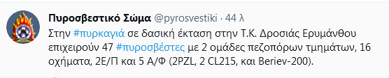 Παράλληλα, έχουν ενισχυθεί οι επίγειες και εναέριες πυροσβεστικές δυνάμεις που επιχειρούν στην περιοχή.
