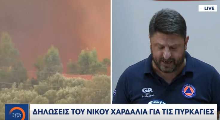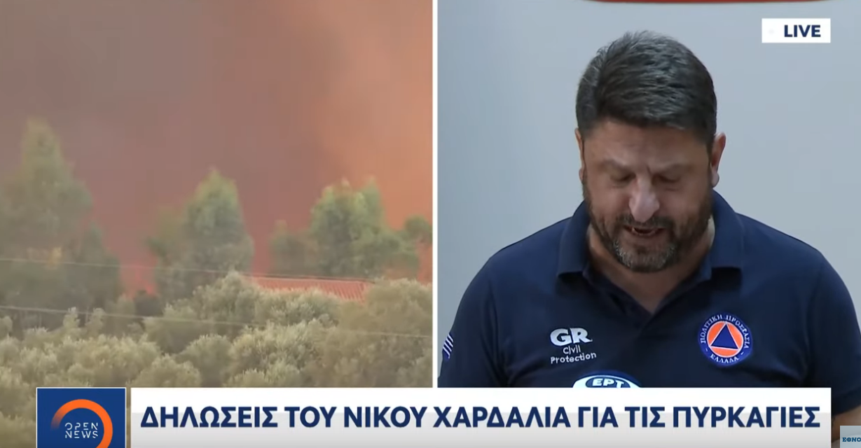 Το σχεδόν ταυτόχρονο ξέσπασμα 7 πυρκαγιών στην Ηλεία, επιβεβαίωσε και ο υφυπουργός Πολιτικής Προστασίας, Νίκος Χαρδαλιάς κατά την ενημέρωσή του.