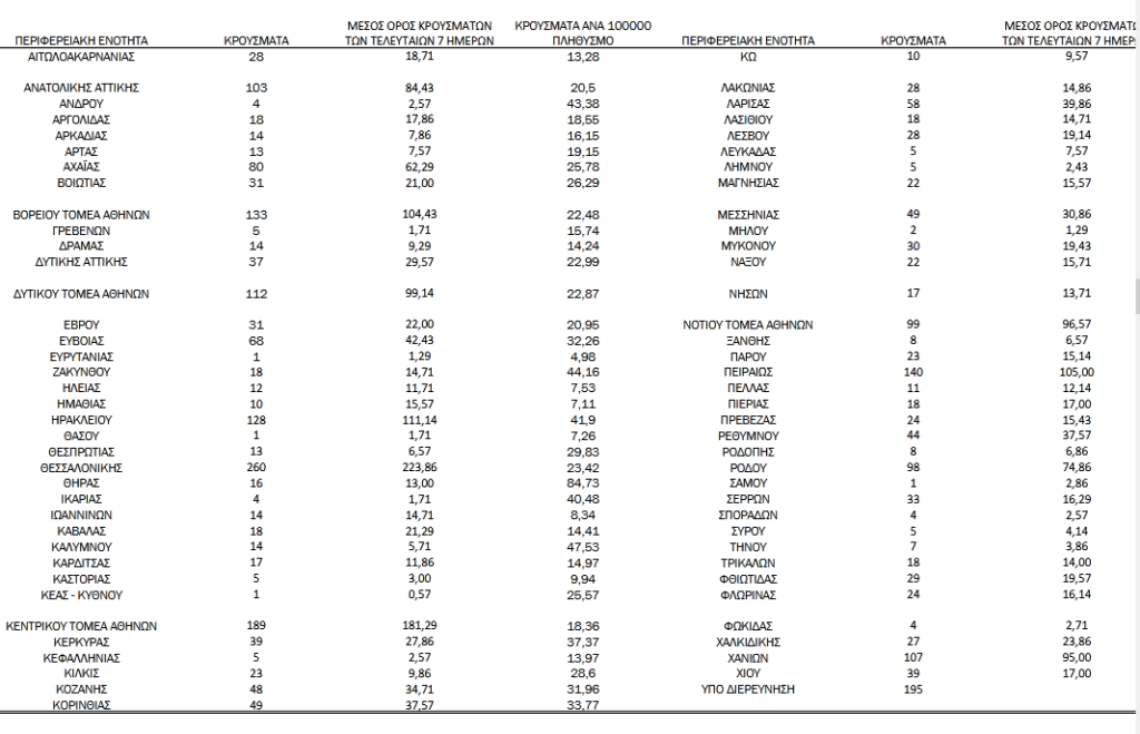 Στην Αργολίδα εντοπίστηκαν 18 νέα κρούσματα, στην Αρκαδία 14, στην Κορινθία 49, στη Λακωνία 28 και στη Μεσσηνία 49
