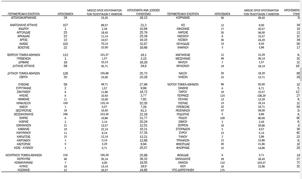 Στην Αργολίδα εντοπίστηκαν 25 νέα κρούσματα, στην Αρκαδία 22, στην Κορινθία 56, στη Λακωνία 17 και στη Μεσσηνία 49