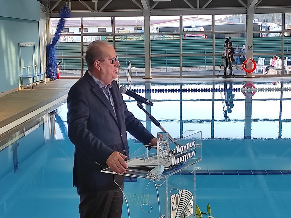 Ο περιφερειάρχης Πελοποννήσου Παναγιώτης Νίκας παρέστη και απεύθυνε χαιρετισμό κατά την τελετή των εγκαινίων από τον Δήμο Αργους – Μυκηνών του κλειστού κολυμβητηρίου στο Αργος, το απόγευμα της Δευτέρας 4 Οκτωβρίου.