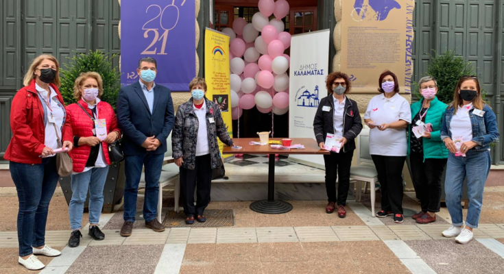 Ενημέρωση των πολιτών για την αξία και τη σημασία της πρόληψης, πραγματοποιήθηκε σήμερα Δευτέρας 25 Οκτωβρίου το πρωί, στον πεζόδρομο της οδού Αριστομένους έμπροσθεν του ιστορικού Δημαρχείου Καλαμάτας, με αφορμή την Παγκόσμια Ημέρα πρόληψης κατά του καρκίνου του μαστού. Η δράση πραγματοποιήθηκε σε συνεργασία του Συλλόγου ατόμων με εμπειρία καρκίνου «Ξαναρχίζω» με το Δήμο Καλαμάτας.