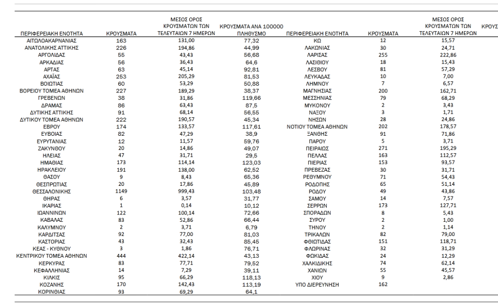 Στην Αργολίδα εντοπίστηκαν 55 νέα κρούσματα, στην Αρκαδία 56, στην Κορινθία 93, στη Λακωνία 30 και στη Μεσσηνία 79
