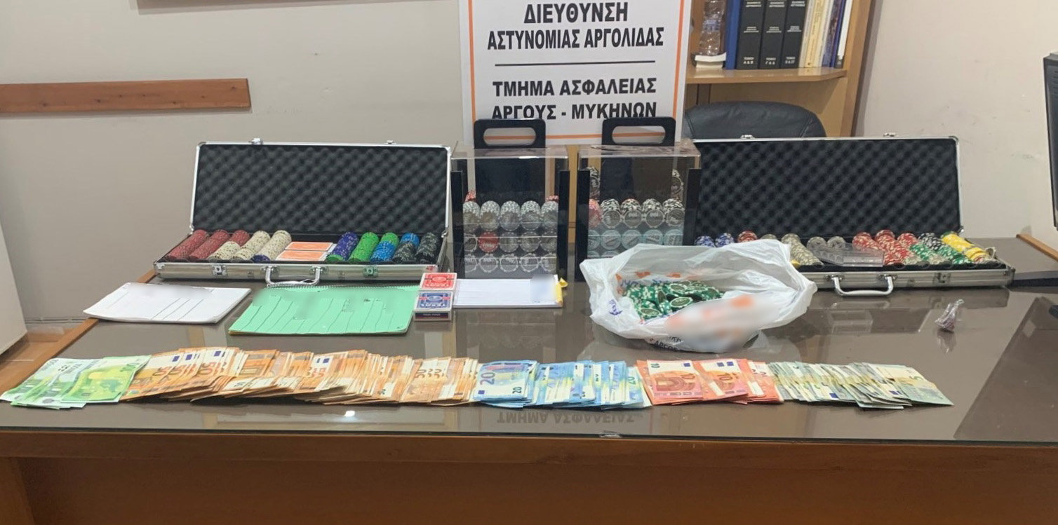 Στο πλαίσιο των ελέγχων για την καταπολέμηση του παράνομου «τζόγου», συνελήφθησαν, στις (28.11.2021) και πρώτες πρωινές ώρες, σε τοπική κοινότητα του Δήμου Άργους – Μυκηνών Αργολίδας, από αστυνομικούς του Τμήματος Ασφάλειας Άργους-Μυκηνών, σε συνεργασία με την Ομάδα Δίκυκλης Αστυνόμευσης (ΔΙ.ΑΣ.) Αργολίδας, -19- ημεδαποί, ηλικίας από 33 έως 78 ετών, αντίστοιχα, καθώς και -4- αλλοδαποί, ηλικίας από 32 έως 44 ετών, αντίστοιχα.