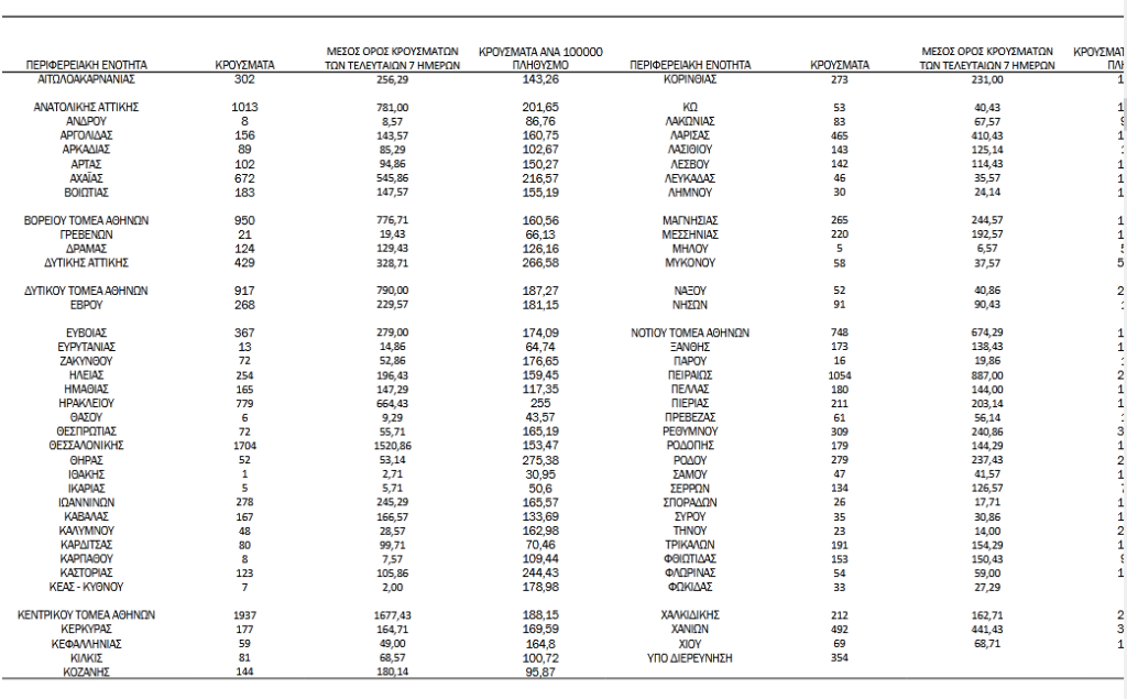 Στην Αργολίδα εντοπίστηκαν 156 νέα κρούσματα, στην Αρκαδία 89, στην Κορινθία 273, στη Λακωνία 83 και στη Μεσσηνία 220
