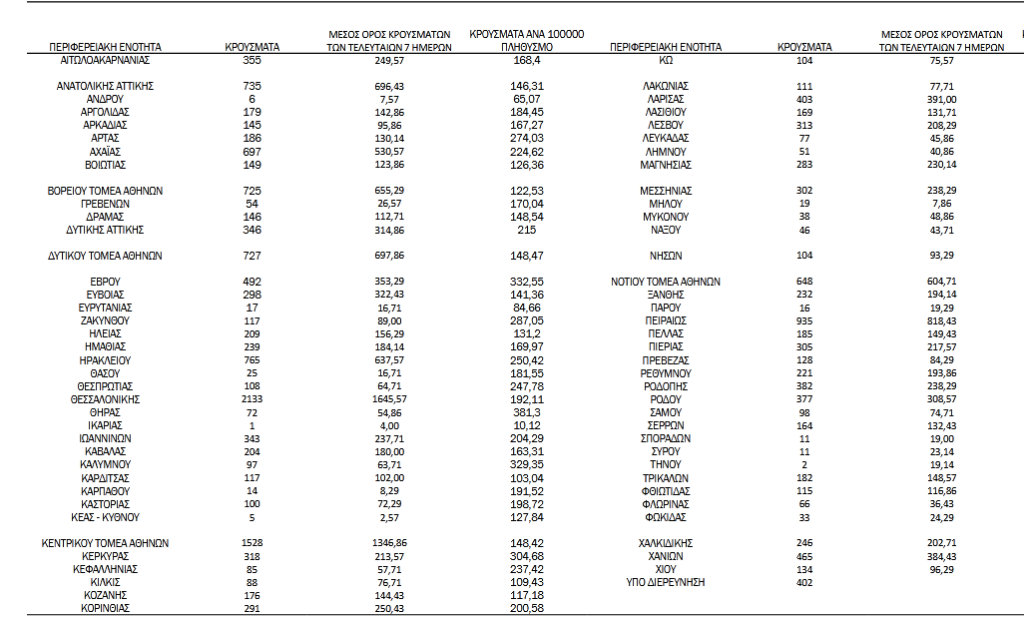 Στην Αργολίδα εντοπίστηκαν 179 νέα κρούσματα, στην Αρκαδία 145, στην Κορινθία 291, στη Λακωνία 111 και στη Μεσσηνία 302