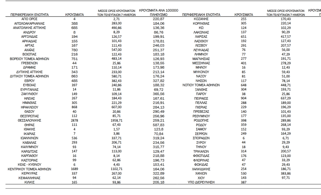 Στην Αργολίδα εντοπίστηκαν 194 νέα κρούσματα, στην Αρκαδία 155, στην Κορινθία 305, στη Λακωνία 137 και στη Μεσσηνία 401