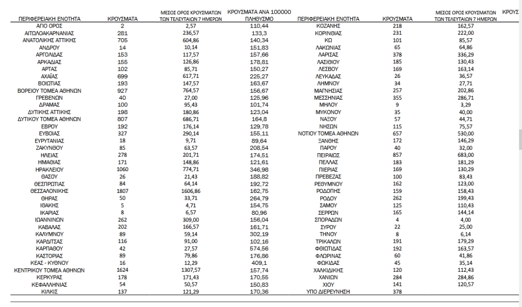 Covid19: 18.094 νέα κρούσματα στη χώρα (γεωγραφική κατανομή) – Συνεχίζεται η μείωση των διασωληνωμένων ασθενών