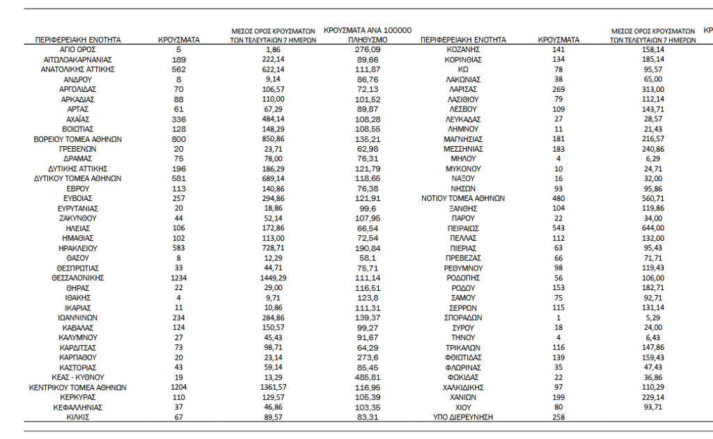 Covid19: 11.883 νέα κρούσματα στη χώρα (γεωγραφική κατανομή) – Συνεχίζεται η μείωση των διασωληνωμένων ασθενών