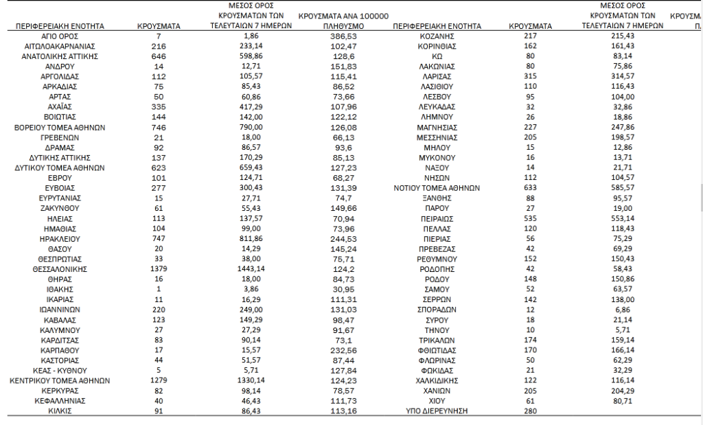 Στην Αργολίδα 112 εντοπίστηκαν νέα κρούσματα, στην Αρκαδία 75, στην Κορινθία 162, στη Λακωνία 80 και στη Μεσσηνία 205