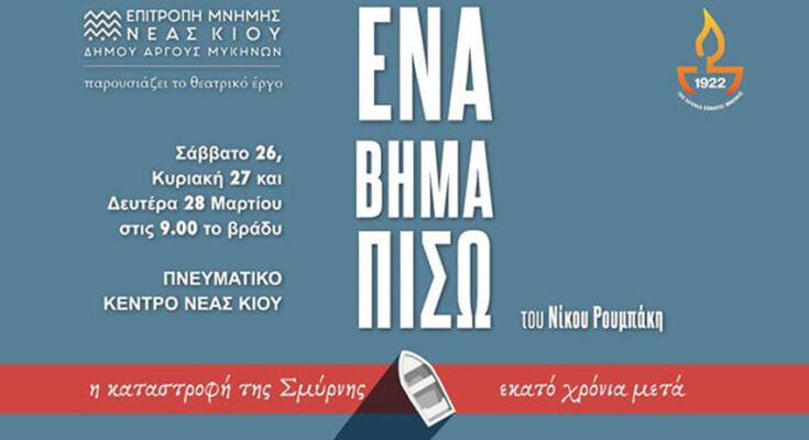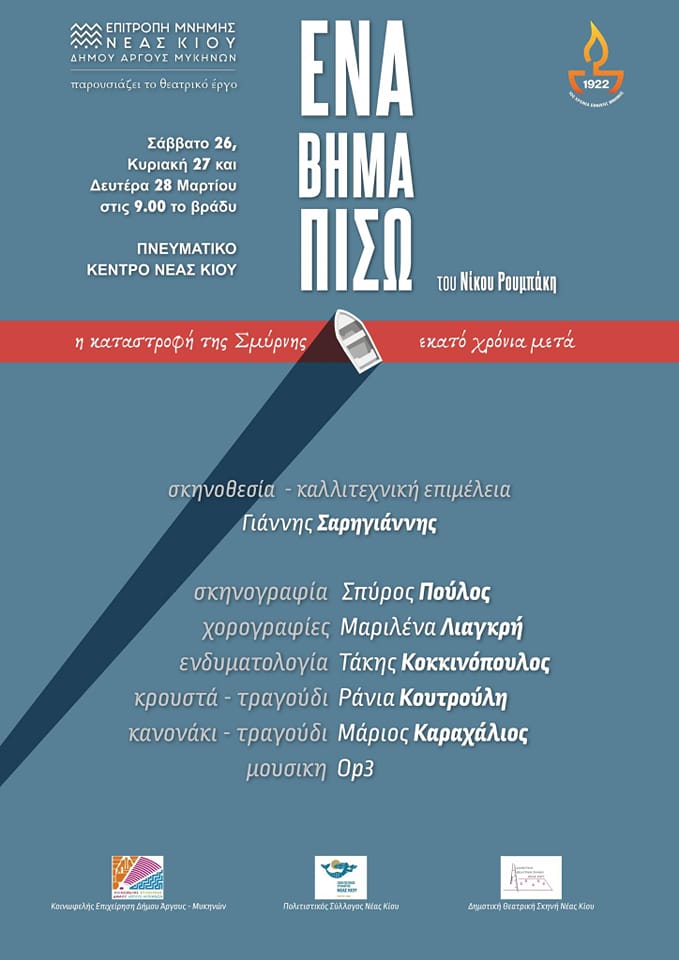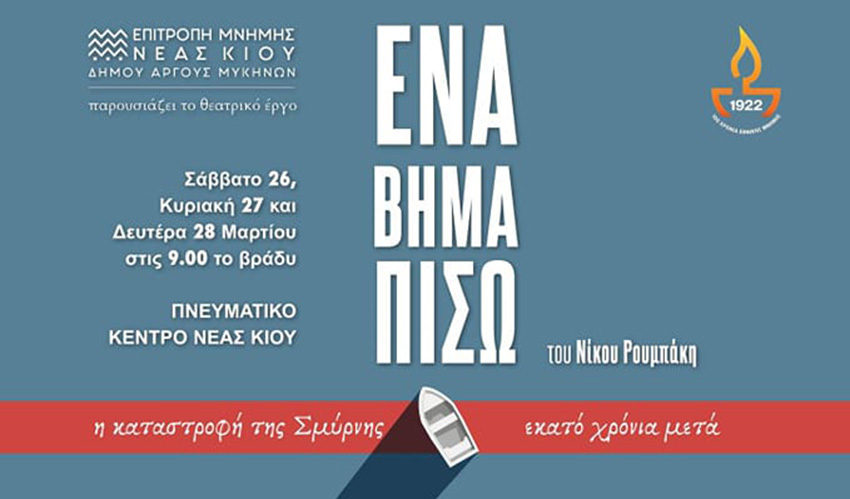 Η ΕΠΙΤΡΟΠΗ ΜΝΗΜΗΣ ΝΕΑΣ ΚΙΟΥ ΔΗΜΟΥ ΑΡΓΟΥΣ ΜΥΚΗΝΩΝ παρουσιάζει την παράσταση «ΕΝΑ ΒΗΜΑ ΠΙΣΩ», αφιερωμένη στα 100 χρόνια από τη Μικρασιατική καταστροφή.